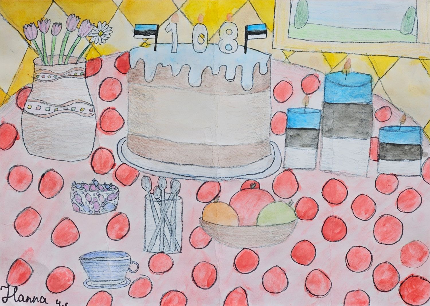 Head vabariigi aastapäeva! Sünnipäeva pidulauda kujutasid 4.c klassi õpilased Hanna Rüütel, Liisa Altmets, Chris Daniel Paalits.